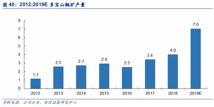 二期扩建项目已于2018年10月实现投产,跻身中国第二大铜矿山。多宝山铜矿二期扩建工程是紫金矿业近几年国内矿山板块最重要的建设项目之一,总投资估算约24.77亿元,已于2016年7月启动设计规划,2017年春动土开工。全部建成后公司采矿规模将达到7万吨/天,选矿规模将达到8万吨/天,矿铜年产能可达9-10万吨,跻身国内第二大铜矿山。2018年10月完成二期I系统建设并迅速投产,2019年8月完成二期新旧系统对接及一期升级改造,实现全线联动,2019年矿产铜7.11万吨,同比+70%。