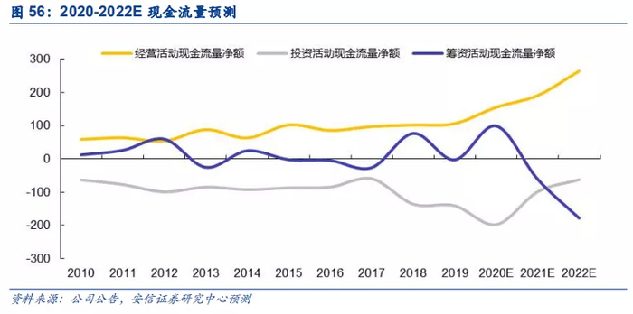 公司大额资本开支进度已经过半,预计未来公司自由现金流充沛。据我们测算,预计公司目前在建项目所需资本开支约343亿,若考虑并购支出,预计总资本开支约447亿,其中2020年为开支高峰。目前公司资本开支进度已经过半,我们预计公司剩余投资额约在190亿左右,考虑到本次60亿可转债项目成功发行,未来公司资本开支压力或进一步降低至130亿左右。