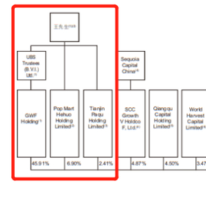 招股书显示,王宁及其配偶杨涛分别持股POP Mart Hehuo Holding Limited 43.99%、15.11%,王宁为其控股股东。Tianjin Paqu Holding Limited由王宁全资控股。