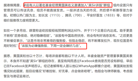 通过以上分析,可以发现,一般这类没有业绩支撑、股权高度集中的公司,庄家容易动用很少的资金拉高公司股价,吸引散户进场。但散户进场有被动和主动,主动就是看到公司股价不断暴涨,有财富梦的驱使。被动就是,这类股还经常会有杀猪盘,即微信群骗散户入手,庄家割肉离场。套路大家都懂,但是在港股却屡试不爽。