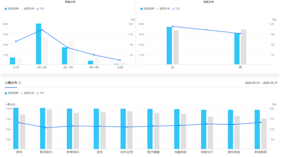 从百度指数可以看出,泡泡玛特的用户画像年龄分层集中在20至39岁,对应80至90后,女性占比接近55%,这类人群的兴趣爱好集中在游戏、影视音乐、教育培训、资讯、软件应用、医疗健康、书籍阅读、旅游出行、餐饮美食和家电数码当中。结合泡泡玛特盲盒零售价单个约59元来看,这类人群应该以白领和学生有主,并且有良好的消费能力。