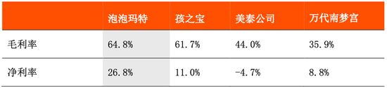 2019年,泡泡玛特的净利率为26.8%,结合64.8%的毛利率,这份数据成绩单力压玩具行业的多个巨头,例如孩之宝(美国玩具公司,拥有变形金刚、大富翁等多个品牌)、美泰公司(美国玩具公司,拥有著名玩具品牌“芭比”)和万代南梦宫(日本娱乐产业集团,拥有机动战士GUNDAM、吃豆人、数码宝贝、铁拳、太鼓之达人等品牌)。