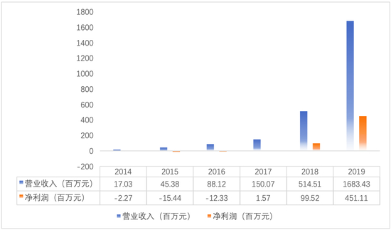 在2014至2016年,泡泡玛特都处于亏损状况,但在这段时间,营收已经处于较高速度增长期,在2017至2019年间业绩得到进步发酵。