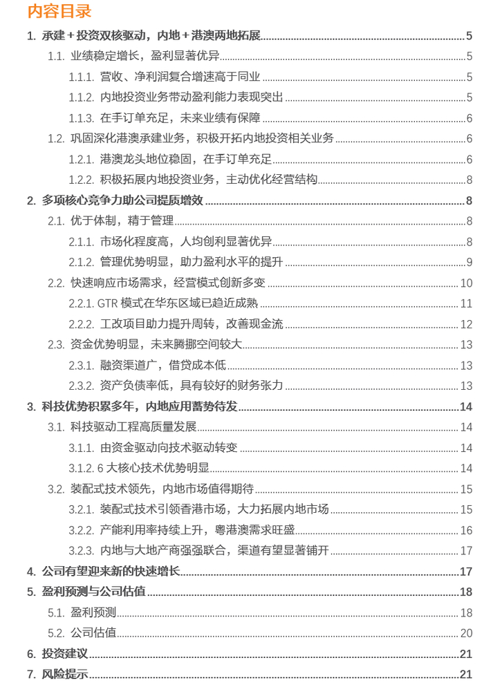 2、装配式业务拓展不及预期:公司在内地装配式业务采取差异化打法,在内地联合大地产商发力钢结构MiC产品,目前成本相对较高,若后续成本下降不及预期,将不利于MiC产品的大面积推广。