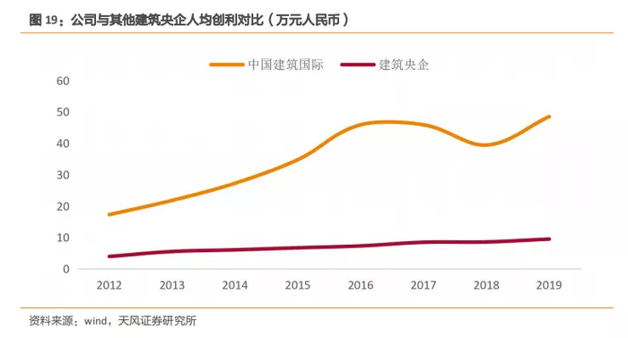 公司凭借市场化激励机制,多年来人均创利高于行业内其他央企的平均水平。截至2019年末,公司人均创利为48.49万元人民币,显著高于行业内其他央企平均值9.48万元。由于公司管理层架构简单,其信息传导更加流畅,有利于集团战略的贯彻与落实,再加上高管薪酬较高,有助于推动企业市场化竞争。