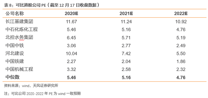 我们选取7家业务相似的港股企业作为可比公司,7家公司的2020年PE中位数为5.46倍。考虑到公司是港澳地区建筑工程企业龙头,预计短期内地位不会发生改变,我们对港澳地区建筑市场短期内持谨慎乐观态度;同时考虑到公司在内地优化经营结构,积极拓展短周期项目,未来有望提升动态回报率和ROE水平,未来业绩有望快速发展。公司多年来保持较高分红水平,近年来股利支付率维持在30%左右。参考可比公司中位数估值,我们给予公司2020-2022年PE分别为5.46、5.16、4.76倍。