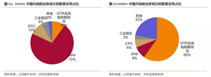 2019年12月国资委在京召开中央企业负责人会议中提出,扎实做好2020年中央企业工作,要以提质增效为抓手,着力实现高质量、有效益、可持续的增长。为快速响应市场需求以及国资委对央企提质增效的理念,公司以提升项目周转率、改善现金流为目标,加大业务模式创新力度,积极拓展安置房定向回购(GTR)、工改等短周期、快周转的经营模式,优化经营业务结构。2020年上半年公司内地新签订单214.6亿港元,其中安置房定向回购等短周期项目占比达60%,PPP占比由去年同期的72%下降为9%。