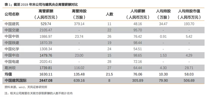 公司在高管薪酬、高管持股等方面市场化程度高,对维护公司管理层稳定、提高人均产能起到积极影响。公司管理层薪酬较高,薪酬总额在央企中排名第1。截至2019年末,公司高管的人均薪酬为305.89万元人民币(2019年12月31日人民币兑港币汇率1.12),是排名第二中国中冶的3.1倍,远高于其他央企高管人均薪酬的平均水平。同时,公司推出高管持股,截至2019年末,公司高管的人均持股为79.9万股,对应人均市值为506.69万元人民币,远高于其他央企高管人均持股市值的平均水平。