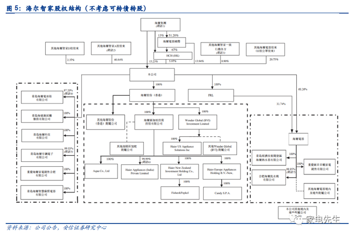 海尔集团为公司实际控制人。2020年海尔私有化港股子公司海尔电器,私有化完成后,海尔集团合计控制海尔智家股份比例将由40.0%降至35.1%。私有化的成功落地有利于公司各级的利益实现统一,降低内耗,帮助公司进一步聚焦零售效率和市场份额的提升。
