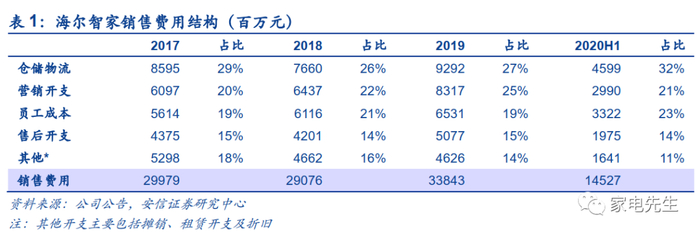 3、海尔通过数字化改革进一步提升全流程效率,优化费用结构,国内销售、管理费用率逐渐下降。