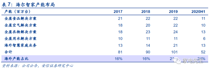 海尔逐步强化海外供应链布局。公司招股书显示,海尔在全球有109家工厂,其中境外工厂46家。海外产能占比由2017年的16%提升至为2020H1的24%。目前海尔仍在不断加强海外产能布局,一方面有利于降低运输成本,另外一方面能够更快速响应市场和渠道的要求,对于进一步提升海外市场的份额具有重要作用。