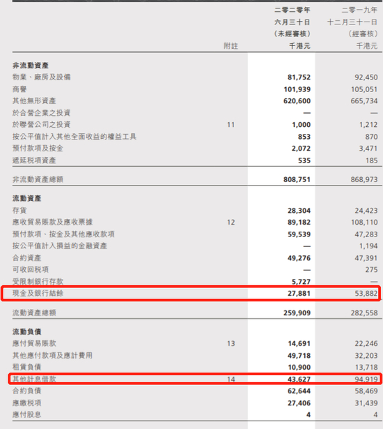 公司资金流问题紧张。2020年中期,公司现金等价物从去年中期的5388万减少到目前的2788万港元。而公司短期借贷及长期到期部分款项就高达4363万港元,短期资产无法覆盖短期负债。