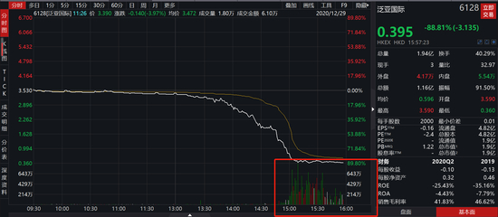 12月29日消息,泛亚国际午后惨遭洗仓,股价暴跌近90%,17亿市值只剩2亿。到底发生了什么?