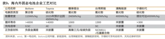 另外,天风证券还对比了几家固态电池的性能与工艺,可以看到,要么是能量密度提上去了,要么是循环寿命不够,就像一个矛与盾。其中赣锋锂业与辉能在能量密度与寿命之间取得了相对的平衡,但综合性能相较当前最先进的宁德时代811,依旧不占优势。