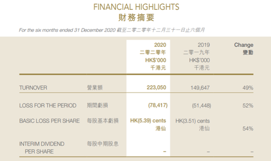不过,随着信阳国际的出售,港股上市信阳毛尖非但没有实现盈利的稳定增长,反而业绩不断下滑。截至2020年12月31日中期报告,公司实现收入2.23亿港元,亏损7842万港元,同比扩大52%,2018年收购信阳国际以来,公司持续亏损。