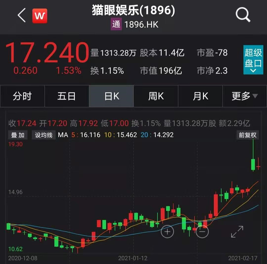 火爆的春节档让影视股继续走强。猫眼娱乐17日开盘大涨5.54%,截至发稿,涨幅有所收窄,但仍上涨1.53%。