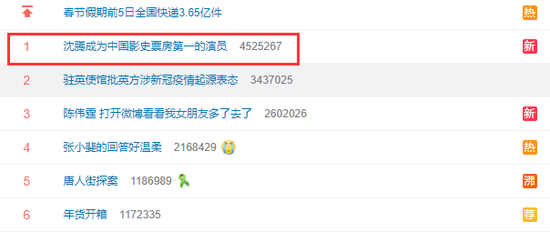 沈腾冲上热搜第一