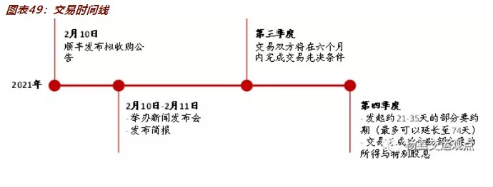 2月10日晚间/2月11日早间,顺丰控股/嘉里物流分别发布公告,顺丰即将对嘉里发起部分要约收购。收购包括发出部分要约、嘉里出售香港货仓与中国台湾业务三个条件,三个条件需在3Q2021同步完成。预计整个收购将在4Q2021完成。