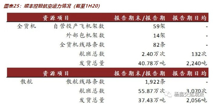 此次交易若成功实行,嘉里物流完善的全球货代网络,可以与顺丰的物流业务形成有效协同。尤其在空运资源方面,截至1H20,顺丰国际航线共执行1,454班,同比增长1,073%,新开18条国际航线,目前已形成辐射亚洲、触达欧洲、通航全球60余城的货运航线网络,国际货代业务的规模效应可有效提升外部资源议价能力及自有航空资源装载率,助力未来国际航线快速布局。