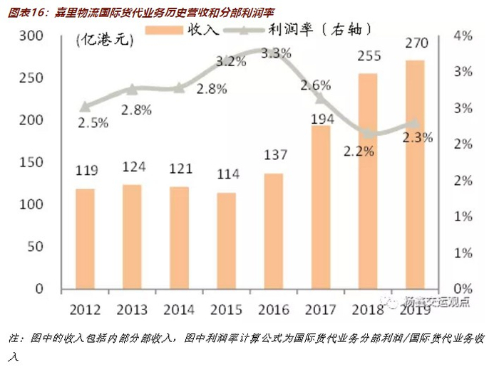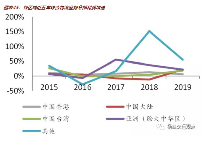 物流运营业务2019年贡献综合物流分部利润的86.6%(分部利润率为9.6%),过去五年利润同比增速14%。