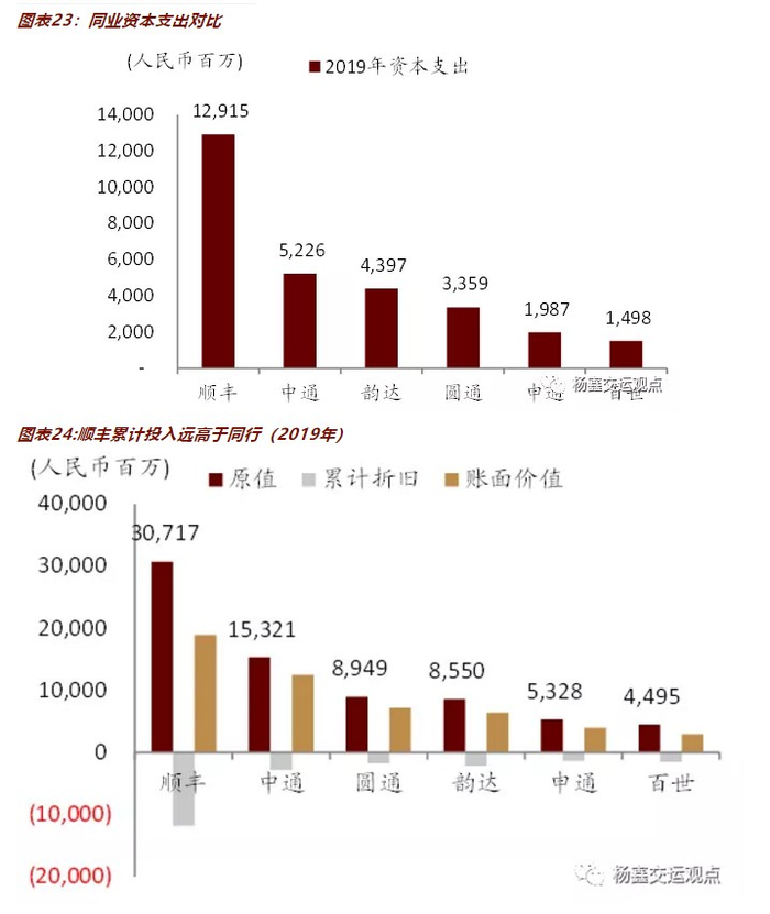 To B物流(合同物流和货代)与To C快递业务或将获得顺丰的赋能而加速增长。我们假设To B物流(合同物流和货代)2019-2023年复合增速14%(vs2018-2019年复合增速18%),我们假设To C快递业务2019-2023年复合增速27%(vs2017-2019年复合增速35%)。该假设尚未考虑顺丰对公司现有物流业务的赋能。
