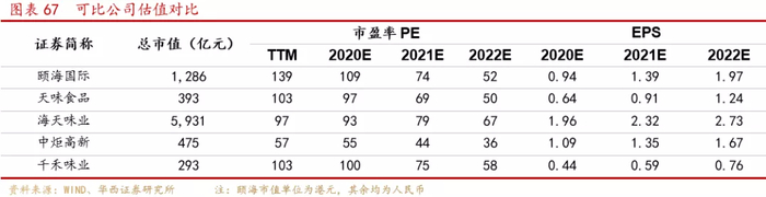 在品质优良、品牌驰名的同时,公司自热食品的价格相较小龙坎等传统火锅企业和自嗨锅等网红品牌更具优势,性价比凸显。方便速食具有广阔的品类衍生空间,颐海已经涉足自热火锅、冲泡粉丝、自热米饭等领域,事实上传统正餐经方便化包装后均有机会成为新的增长点,如方便粥饭、方便汤羹等,能否在品质、规模、性价比等方面取得先机将是该赛道的胜出关键,考虑颐海的技术、渠道、品牌、规模优势,我们认为公司在方便速食赛道仍存在品类衍生的可能。