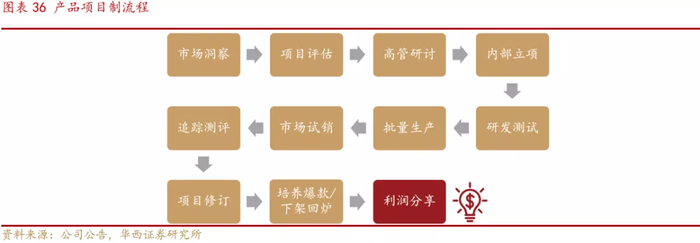 C端消费者口味纷繁复杂,易受美食KOL、网络自媒体等方面影响,叠加消费主力年轻化的趋势,对于小众口味、网红口味具有更强的尝试及追随欲望,因此面对层出不穷的热点宣传、高频高速的口味迭代,C端消费者的粘性低于B端消费者。公司于2018年在研发端引入产品项目制,准确把握C端消费者的偏好特性。在产品项目制下,有新品创意及具备统筹管理能力的员工被提拔为项目负责人,领导项目从立项到上市的整个流程,产品上市实现盈利后项目组成员可以进行相应的利润分享。