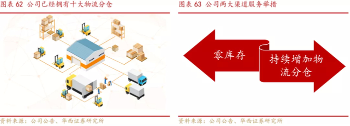 公司近几年第三方收入高速增长,占比超过关联方收入,搭建了独立的销售和经销网络,覆盖全国31个省级地区及港澳台地区,以及49个海外国家和地区,主要得益于其对内强化销售体系建设,对外重视经销商服务。 公司内部通过合伙人机制打造了一支执行力强、目标明确的销售队伍,合伙人与其所负责区域的经营利润直接挂钩,并持续引入“师徒制”加码季度PK和市场化竞争,不断完善机制的同时提升队伍执行力和业绩水平。 公司对外十分重视经销商服务,通过10个区域物流分仓缩短发货周期,降低经销商的起订数量和库存,对于重点的KA客户实行“零库存”。