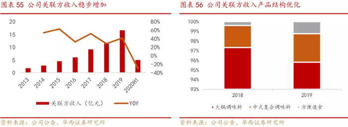 海底捞2019年开始推广火锅餐饮千人千味,公司也在不断配合其研发底料产品,根据消费者口味趋势研发创新出各式地方特色风味锅底,并根据消费者反馈不断升级锅底配方。 与关联方长期有效的合作既能为公司带来业绩增量,又能提升自身的研发创新能力,是公司重要的业绩基石。