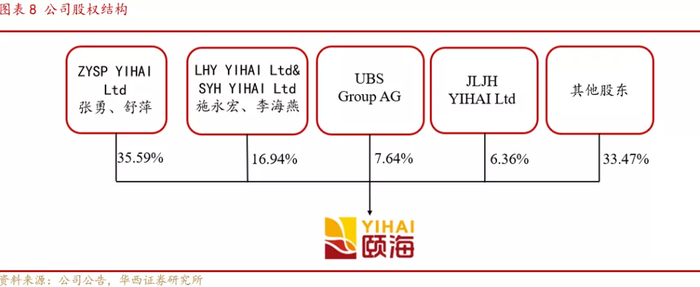 公司前身为四川海底捞成都分公司,经境内外重组后赴港上市。2005年四川海底捞成立成都分公司,后经一系列并购重组、资产转让流程,于2016年赴港上市。目前张勇先生和舒萍女士通过名下公司ZYSP YIHAI LTD持有颐海国际35.59%的股份,为公司第一大股东。与海底捞深厚的历史渊源以及股东高管之间高度重合的密切联系,使得公司能够在品牌、渠道等方面与海底捞保持较为一致的步调,构成了公司在复合调味品行业尤其是火锅底料赛道的核心竞争力。