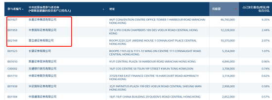该13家经纪行分别是:时富证券有限公司、中州国际证券有限公司、兴证国际证券有限公司、中国通海证券有限公司、京华山一国际(香港)有限公司、凯基证券亚洲有限公司、京基证券集团有限公司、六福证券(香港)有限公司、大圣证券有限公司、山证国际证券有限公司、晋立峰证券有限公司、中泰国际证券有限公司及尊嘉证券国际有限公司。