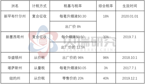美国各州电子烟税率: