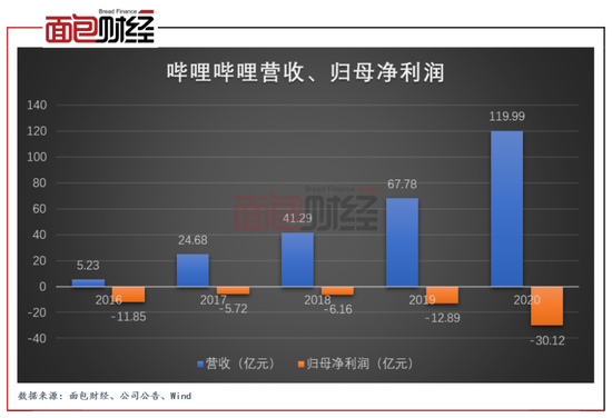 然而,营收增长较快的同时,哔哩哔哩亏损规模自2017年以来持续扩大。招股书显示,2020年B站的亏损达30.12亿元。