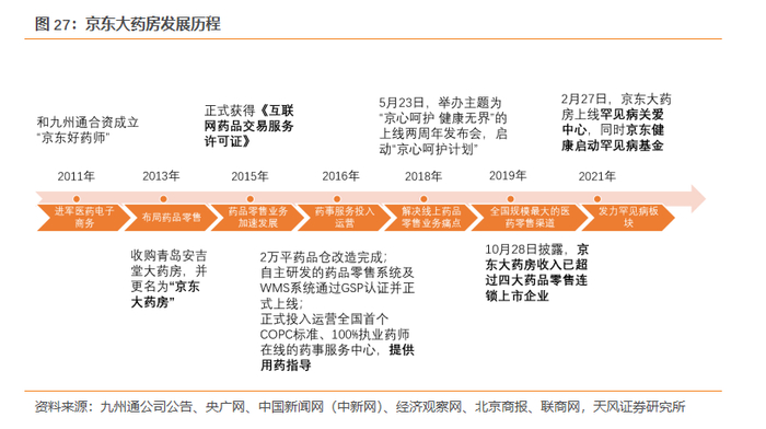 京东健康最初从京东电商平台的医药零售发展而来,并由B2C电商平台发展为成为B2B,B2C,O2O兼具零售药房和在线医疗功能的综合性医疗平台。