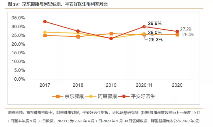 在三家公司毛利率相近的情况下,京东健康在三家公司中营收最多。我们认为,京东健康能够在获得最高的营收,体现出其强大的物流基础和供应链带来的议价能力。