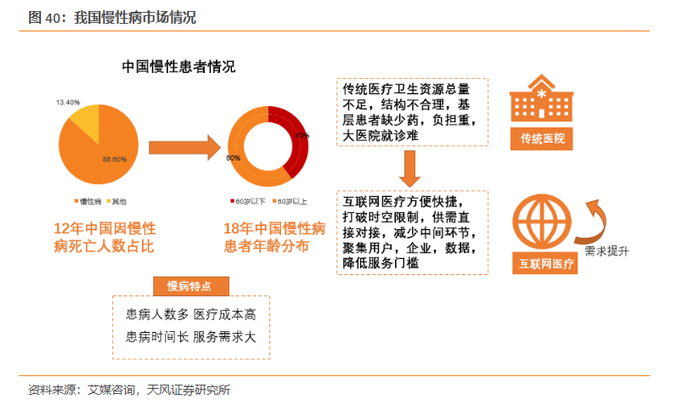 互联网+慢病管理。慢性病与其他疾病相比对于医生的品牌效应和流量的依赖度较低,存在着患病时间长、服务需求大等特点。由于慢性病的特性,慢性病患者需要与医生建立长期稳定的关系,互联网医疗中在线问诊等方服务在慢性病管理的应用上具有其方便快捷,打破时空限制,供需直接对接的优势,可以有效分担门诊压力,优化医疗服务流程,促进在线问诊业务发展。