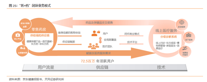 流量:京东拥有庞大的用户群和签约客户,京东可为京东健康引流并转售药品。