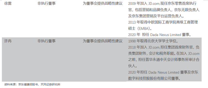 公司股权结构较为集中,其中京东集团通过其全资子公司JD Jiankang间接合共控制已发行股份总数的68.73%,持股21.5亿股,占据绝对控股地位,为京东健康实际拥有人。京东健康的管理团队经验丰富,多为京东集团高管,有着多年的互联网,电子商务等行业的经验。