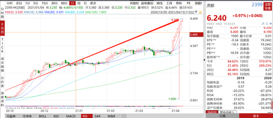 股价大涨背后,公司2020年10月23日公布,公司拟146万收购天津自贸区的蓝天科技全部股权,进军新能源汽车销售业务;10月28日,虎都公布,与执行董事兼总经理同心订立谅解备忘录,可能收购天津洪高科技100%股权,后者主要于中国通过网络平台从事汽车营销及配套产生的汽车金融,汽车配件,线下汽车交易服务等业务,蹭上新能源汽车的风口,公司股价一飞冲天。