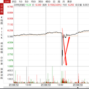 我们再看公司暴跌时的成交数据,公司当天虽然放量成交1.26亿股,涉资超6亿,但公司在暴跌的时候成交量异常小,涉资不足500万股。