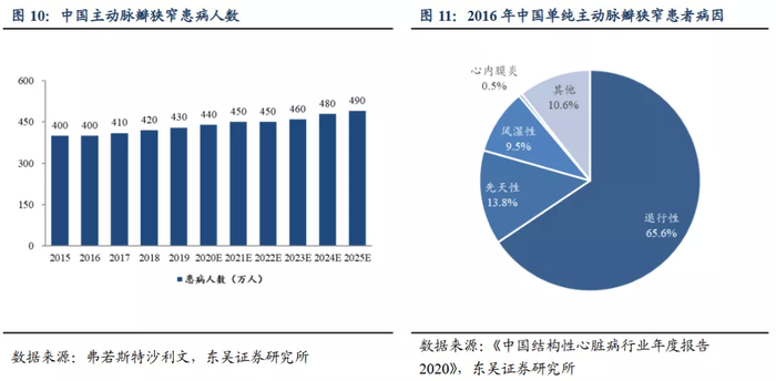 主动脉瓣狭窄是一种常见的瓣膜性心脏病,是指主动脉瓣收窄,阻塞了血液在心脏收缩期从左心室流入升主动脉。根据弗若斯特沙利文报告,中国2019年主动脉瓣狭窄患者数量为430万人,弗若斯特沙利文预计2025年将达到490万人。在中国,超过65%的主动脉瓣狭窄患者是由于瓣膜退行性变引起。主动脉瓣狭窄自然病程研究表明,对于已出现症状的重度患者若不进行及时的干预,2年内死亡率可达到50%。