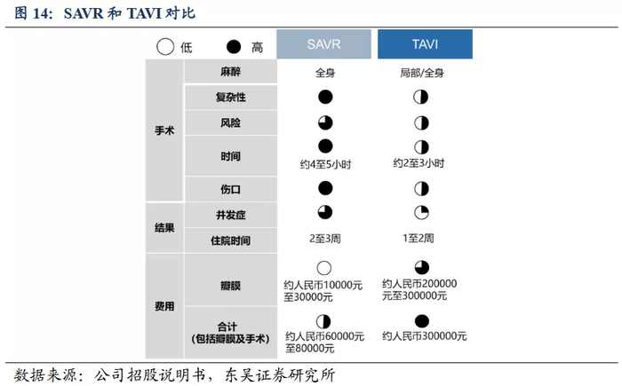 与SAVR手术相比,TAVI手术侵入性小,手术风险小,创伤小,住院时间短且术后恢复期短。此外TAVI手术时间通常为一到两个小时,SAVR则通常为三到六个小时。