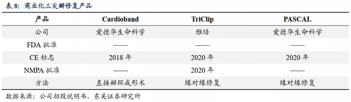 由于二尖瓣在结构上与三尖瓣有某些相似之处,针对三尖瓣疾病开发有效治疗方法的难度同样较高,目前全球只有欧洲上市的三款商业化经导管三尖瓣修复产品。