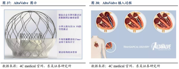 除了Valcare,公司也投资了4C Medical,该公司研发的TMV置换产品AltaValve正在开展早期人体可行性研究。AltaValve的上环装置和心房固定装置设计用于解决现有TMV技术存在的锚定和固定困难的问题。此外,AltaValve使左心室构型保持完好,从而降低左室流出道阻塞和损害风险。AltaValve可通过经房间隔或经心尖入路植入,其适用于大多数二尖瓣反流患者。