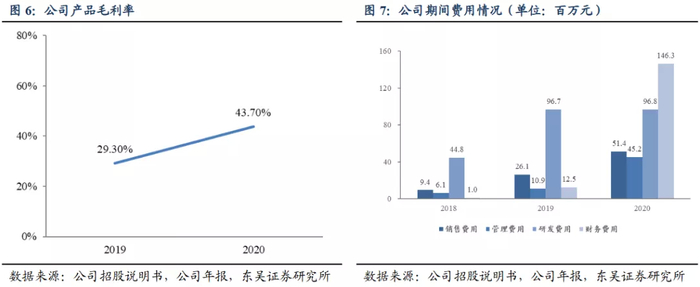 毛利率和期间费用率:公司目前商业化产品仅有VitaFlowTM。2020年公司VitaFlowTM毛利率为43.7%,比2019年的29.3%显著提升,主要是生产效率提升、规模效应下成本降低以及随着销售规模扩大,公司对原材料供应商的议价能力增强。我们预计随着公司VitaFlowTM的继续放量增长,公司毛利率有望进一步提高。