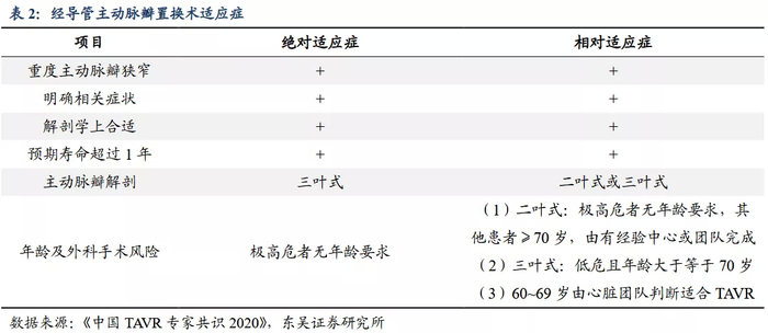 目前TAVI手术在国内只适用于不能进行SAVR手术和SAVR高风险患者人群,参照TAVI在美国的发展过程,中国有望在未来拓展TAVI适应人群,推动TVAI手术量加速增长。根据《中国TAVR专家共识2020》,中高危患者为TAVI的绝对适应症,外科手术低危且年龄大于等于70岁,二叶式主动脉瓣为TAVI的相对适应症。TAVI适应症在中国的拓展,成为大概率事件。