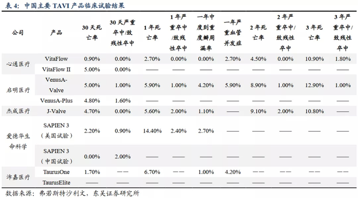 在临床试验方面,VitaFlowTM 在全因死亡率及术后并发症(包括中度/重度瓣周漏、严重卒中和血管并发症)方面表现极为出色。全因死亡率在出院时和植入后30天均为0.9%,在植入后6个月和12个月均为2.7%,在植入后24个月为4.5%及在植入后36个月为10.9%。在TAVI手术后12个月内,并无患者出现中度或重度瓣周漏。在TAVI手术后24个月内,并无患者出现严重卒中;在TAVI手术后36个月内,只有两名患者出现严重卒中。在TAVI手术后36个月内,只有2.7%患者出现严重血管并发症。综合来看,公司多项临床数据在国内同类产品中保持领先,显示出VitaFlowTM卓越的产品性能。