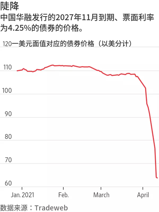 从4月5日开始,多支华融海外发行的债券就遭到抛售,不少债券当日的价格跌幅达40%,一天内债券票面的价值只剩60%,特别是长期债受影响最大。