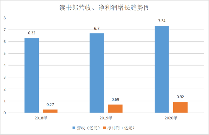 业绩战况上,读书郎这两年的表现值得肯定。招股书显示,读书郎教育收入由2018年的6.32亿元人民币(下同)增加6.0%至2019年的6.7亿元,并进一步增加9.6%至2020年的7.34亿元。同期,公司净利润由2018年的2682.2万元增加158.9%至2019年的6943.5万元,并进一步增加32.5%至2020年的9201.3万元。