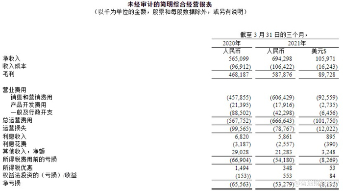 财报显示,公司当期净收入达到6.94亿元,同比增长22.9%,创下历史新高;与此同时,公司毛利润达到5.88亿元,同比增长25.6%,当期毛利率为85%;此外,公司Q1季度净亏损为5330万元,同比收窄18.7%,环比收窄28%;当季净亏损率为7.7%,较2020年同期的11.6%下降近4个百分点。